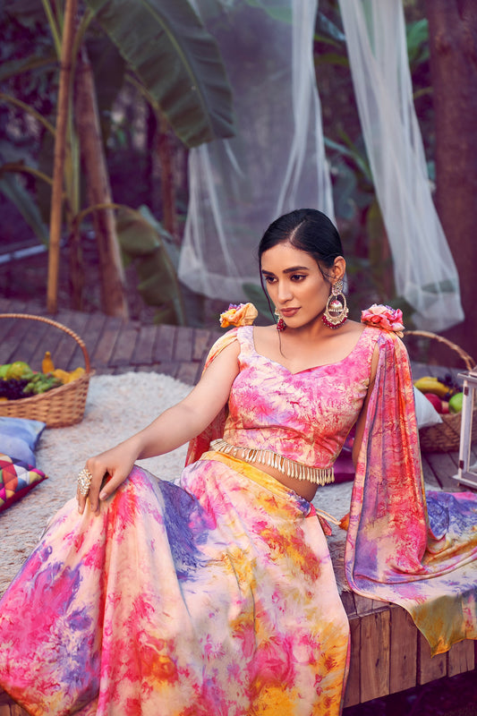 Purple and Pink Silk Printed Party Wear Lehenga Choli