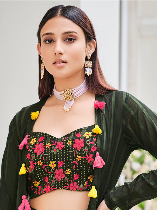 Green Diamond Georgette Sequins Work Mehendi Lehenga