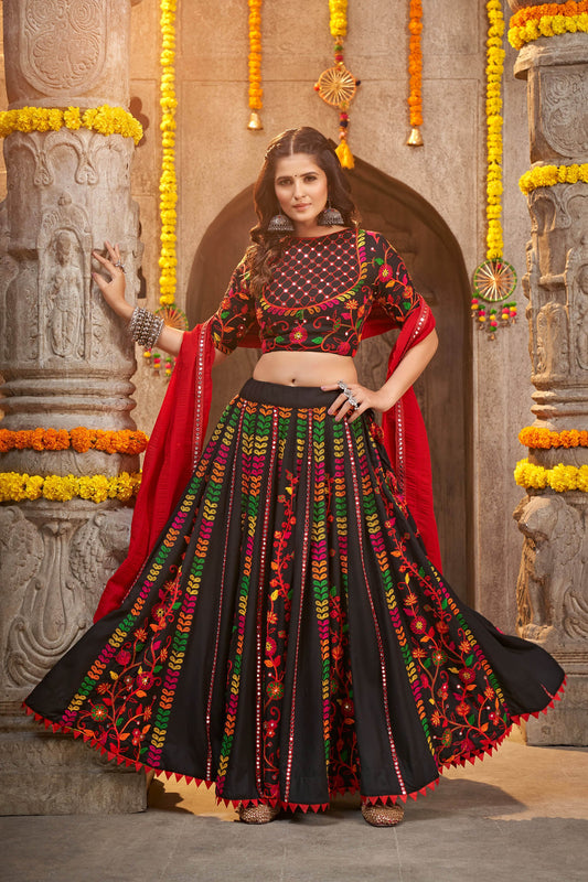 Black Color Mirror Work Viscose Rayon Navaratri Lehenga