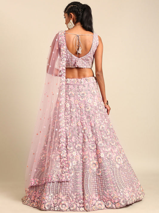 Mauve Net Multi Sequins & Zarkan embroidery Lehenga choli