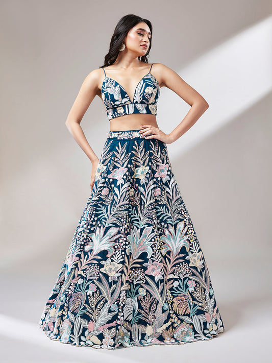 Navy Blue Net Sequins Work Bridesmaid Lehenga