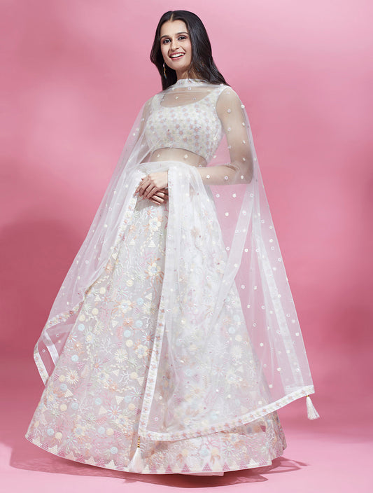 Cream Net Sequins with heavy Zarkan embroidery Lehenga