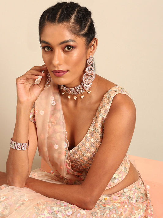Peach Net Multi Sequins & Zarkan embroidery Lehenga choli