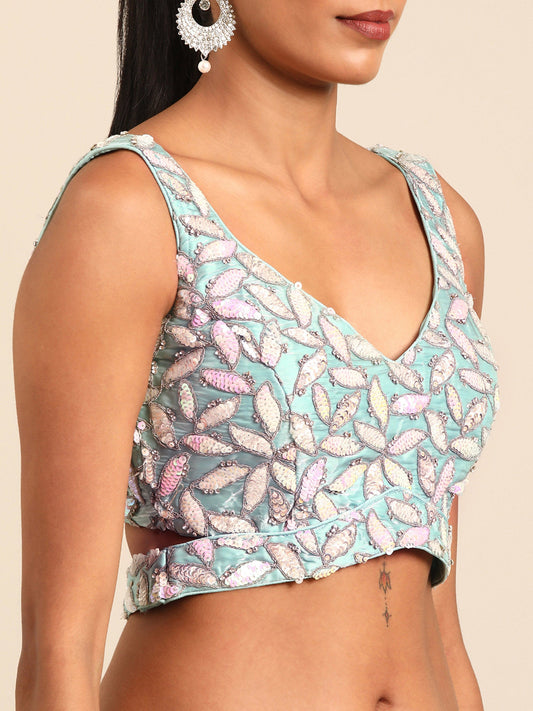 Teal - Georgette Sequins, Mirror and thread embroidery Lehenga choli