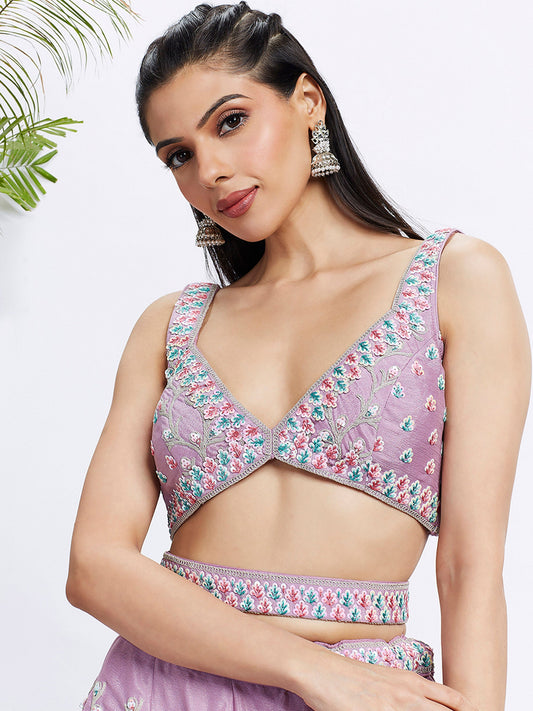 Lavender Pure Chiffon Sequins and thread embroidery Lehenga
