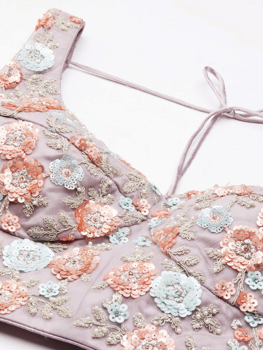 Mauve Net Sequins & Zarkan embroidery Lehenga