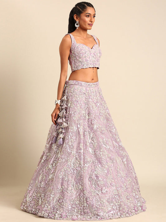 Lavender Net Sequins and Zarkan embroidery Lehenga