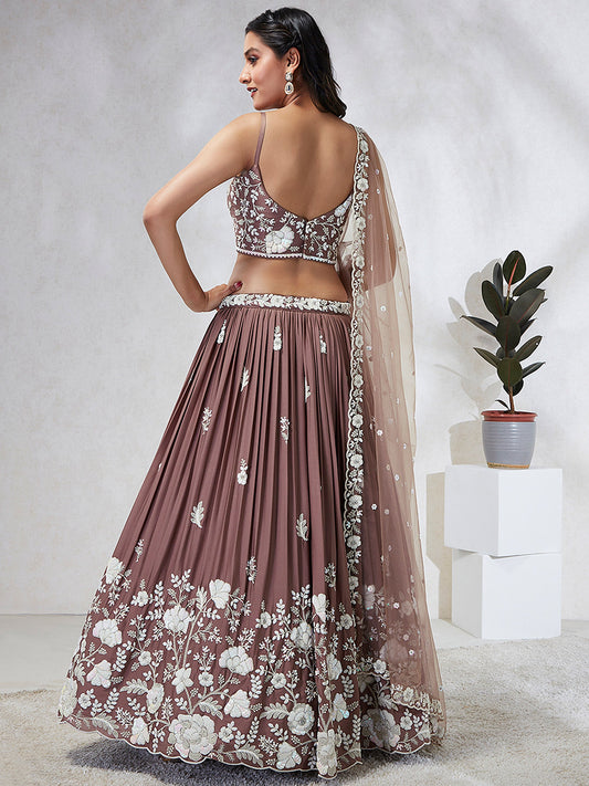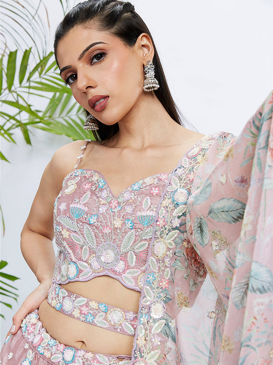 Mauve Chiffon Sequins and thread embroidery Lehenga