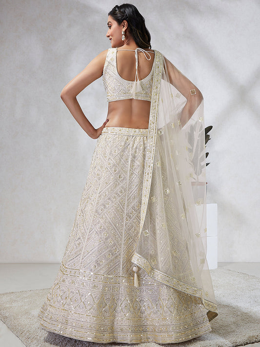 Cream Net Cutdana, Sequins and Zarkan embroidery Lehenga